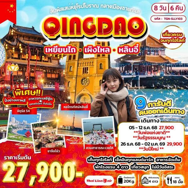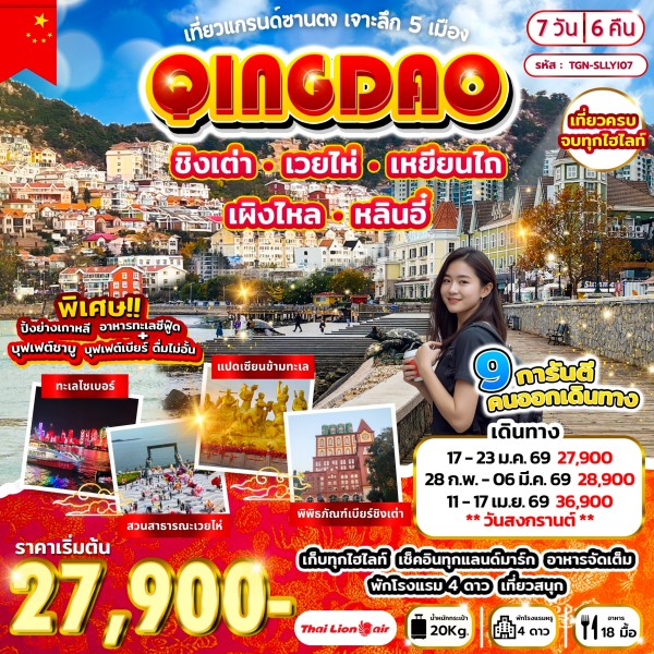 • ทัวร์ชิงเต่า เที่ยวสนุกช้อปกระจาย พักใจกลางย่านช้อปปิ้ง ฟรีเดย์ ไม่ลงร้าน