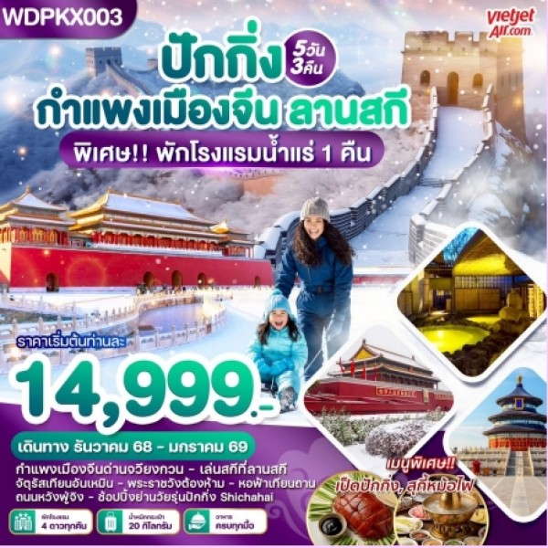 • ทัวร์ปักกิ่ง Cool Snow ปักกิ่ง กำแพงเมืองจีน ลานสกี อาบน้ำแร่