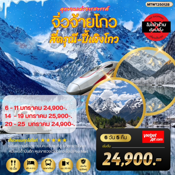 เฉิงตู จิ่วจ้ายโกว ต๋ากู่ปิงชวน ภูเขาสี่ดรุณี 5-10 ธ.ค.68
