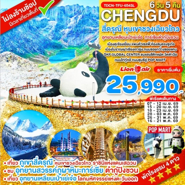 เฉิงตู ภูเขาสี่ดรุณี อุทยานปี้เผิงโกว อุทยานธารน้ำแข็งต้ากู๋ปิงชวน 27 พ.ย.-02 ธ.ค.68