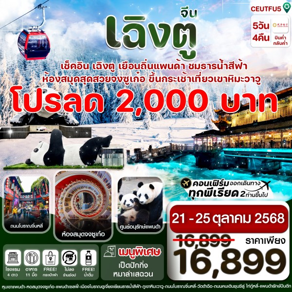 • ทัวร์จีน เฉิงตู เยือนถิ่นแพนด้า ชมธารน้ำสีฟ้า เขาหิมะวาวู