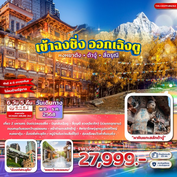 ทัวร์จีน มหานครฉงชิ่ง มรดกโลกผาหินต้าจู๋ (ไม่ลงร้าน) 5 วัน 3 คืน