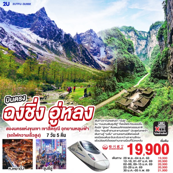 จีน 2 มหานคร ฉงชิ่ง เฉิงตู เขาสี่ดรุณี กาเซียร์ 12-19 เม.ย.68