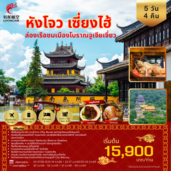 • ทัวร์หังโจว เซี่ยงไฮ้ ล่องเรือเมืองโบราณจูเจียเจี่ยว