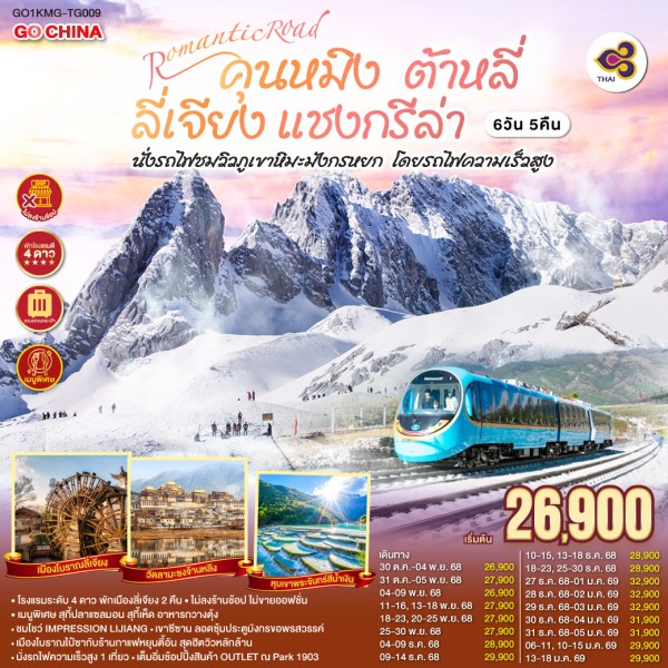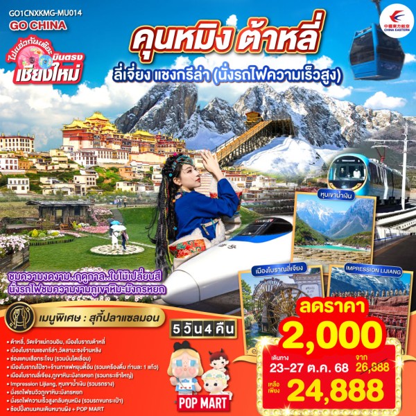 • ทัวร์จีน ROMANTIC ROAD คุนหมิง ต้าหลี่ ลี่เจียง แชงกรีล่า นั่งรถไฟชมวิวภูเขาหิมะมังกรหยก โดยรถไฟความเร็วสูง