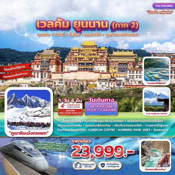 • ทัวร์จีน สายลมหวน ชวนให้คิดถึง คุนหมิง ต้าหลี่ ลี่เจียง นั่งรถไฟความเร็วสูง (ไม่ลงร้านช้อปปิ้ง)