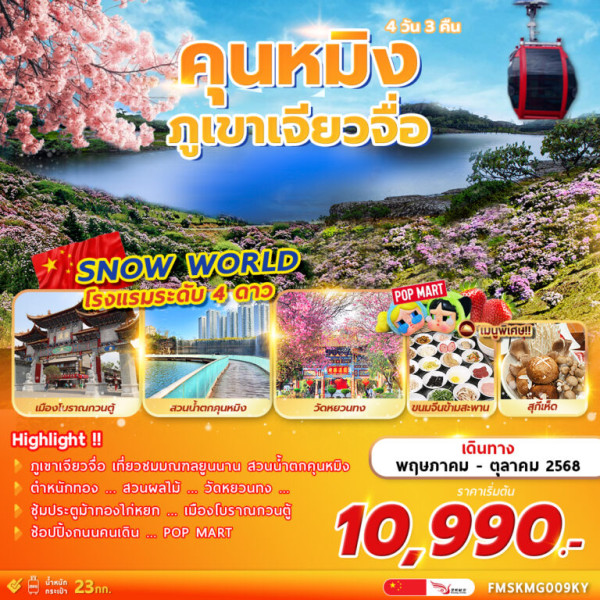 ทัวร์คุณหมิง ภูเขาหิมะเจียวจื่อซาน #คุนหมิงSNOWว้าว 3 วัน 2 คืน