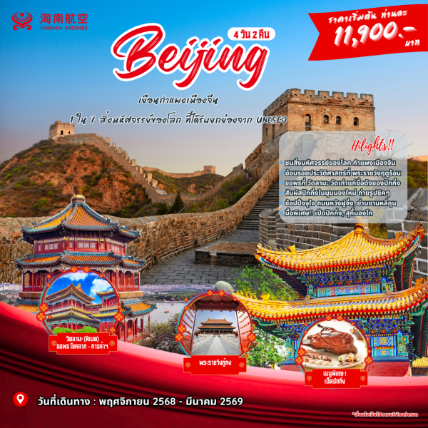 • ทัวร์จีน ปักกิ่ง กำเเพงเมืองจีน ชมใบไม้เปลี่ยนส