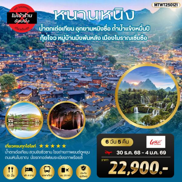 ทัวร์หนานหนิง กุ้ยหยาง รถไฟความเร็วสูง ชมน้ำตกเต๋อเทียน สัมผัสวิถีชนเผ้าแม้วซีเจียง *ทัวร์ไม่ลงร้านรัฐบาล* 6 วัน 5 คืน