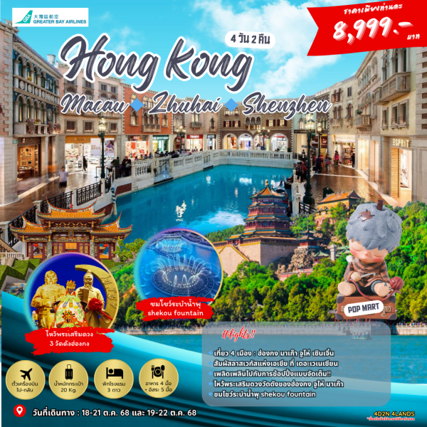 • ทัวร์ฮ่องกง PRO HONGKONG MACAO ZHUHAI เที่ยวคุ้ม 3 ประเทศ