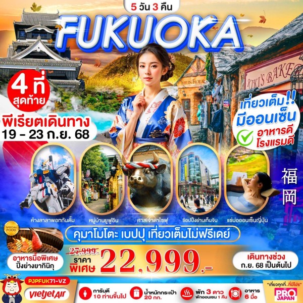 ทัวร์ญี่ปุ่น PRO JAPAN FUKUOKA KUMAMOTO BEPPU 5 วัน 3 คืน
