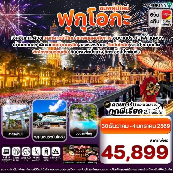 • ทัวร์ญี่ปุ่น FUKUOKA KUMAMOTO BEPPU 5D3N (เที่ยวเต็ม ไม่มีฟรีเดย์)